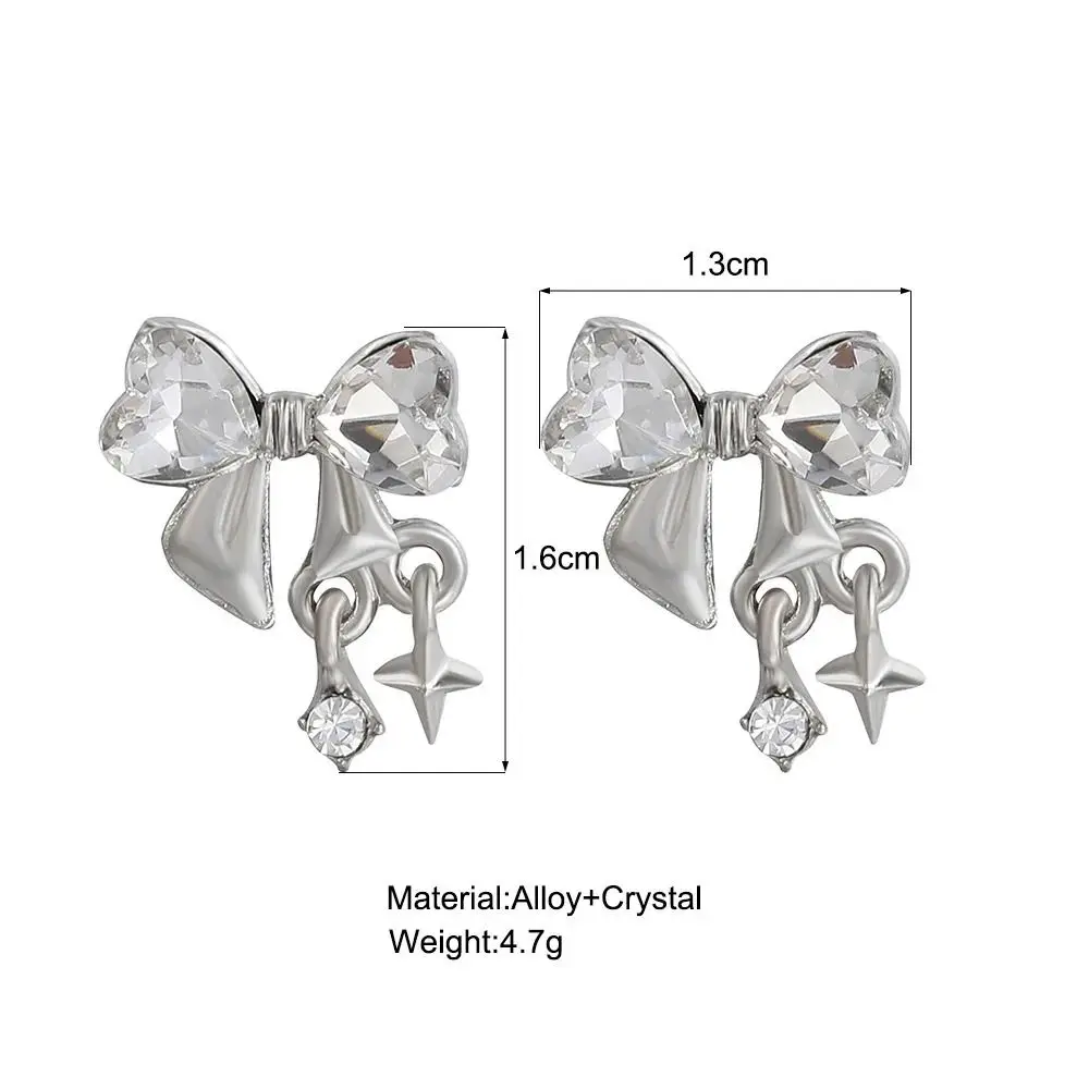 Серьги-гвоздики из сплава с цирконом, эстетические серьги с бантом, новинка Y2K, серьги с бантом, женские серьги