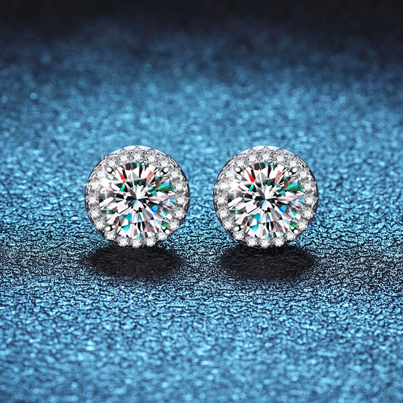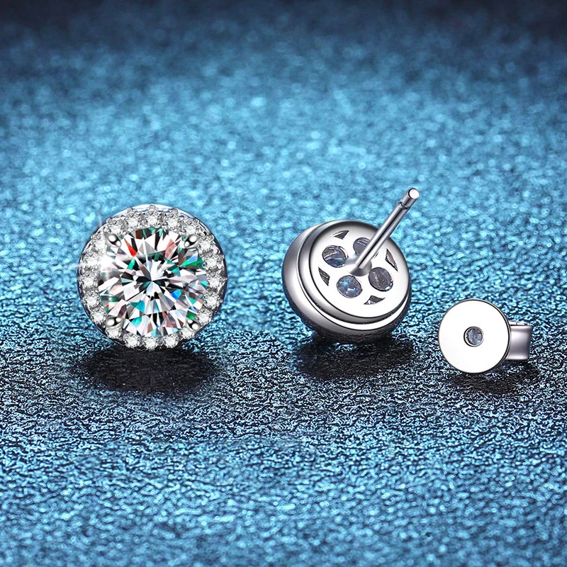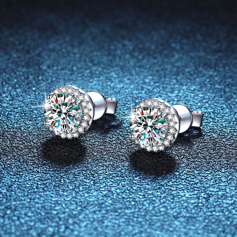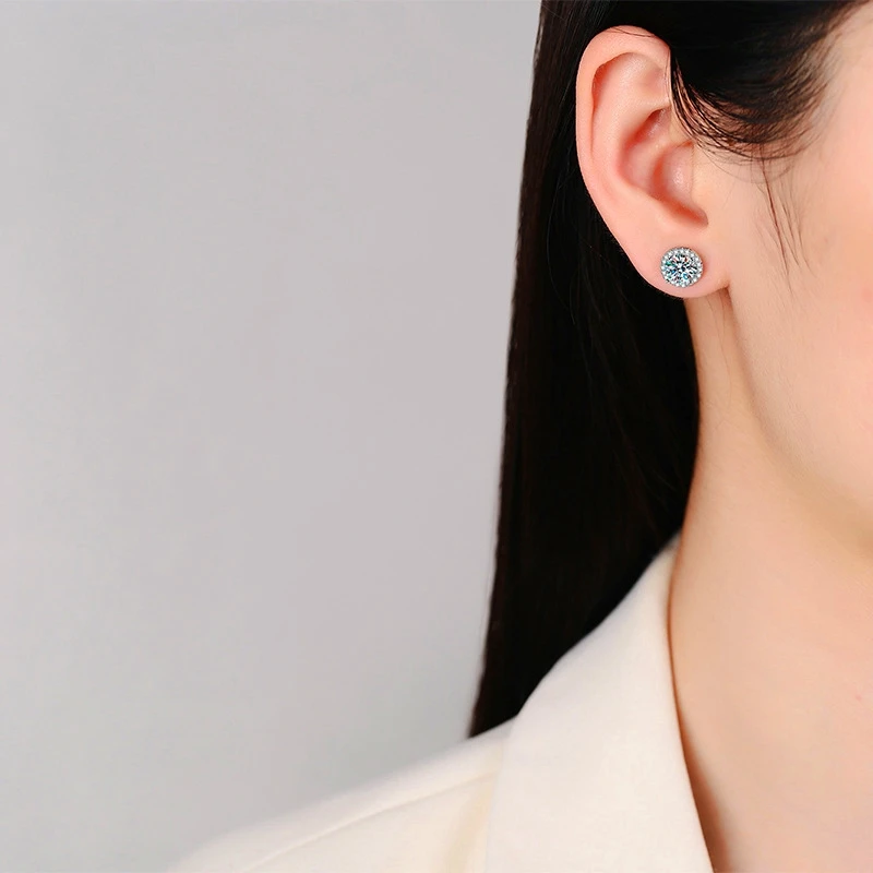 Серьги-гвоздики круглые из серебра 925 пробы с бриллиантом карат