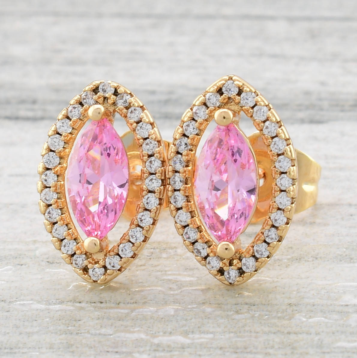 Серьги гвоздики 25124 размер 13х8 мм розовые фианиты вес 2.2 г позолота 18К