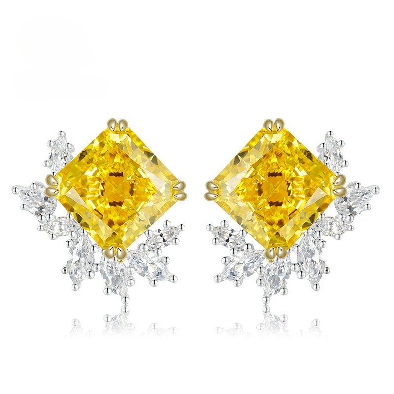 Серьги-гвоздики Qiaoer из серебра с цитрином, изумрудом, бриллиантами из высокоуглеродистого сплава