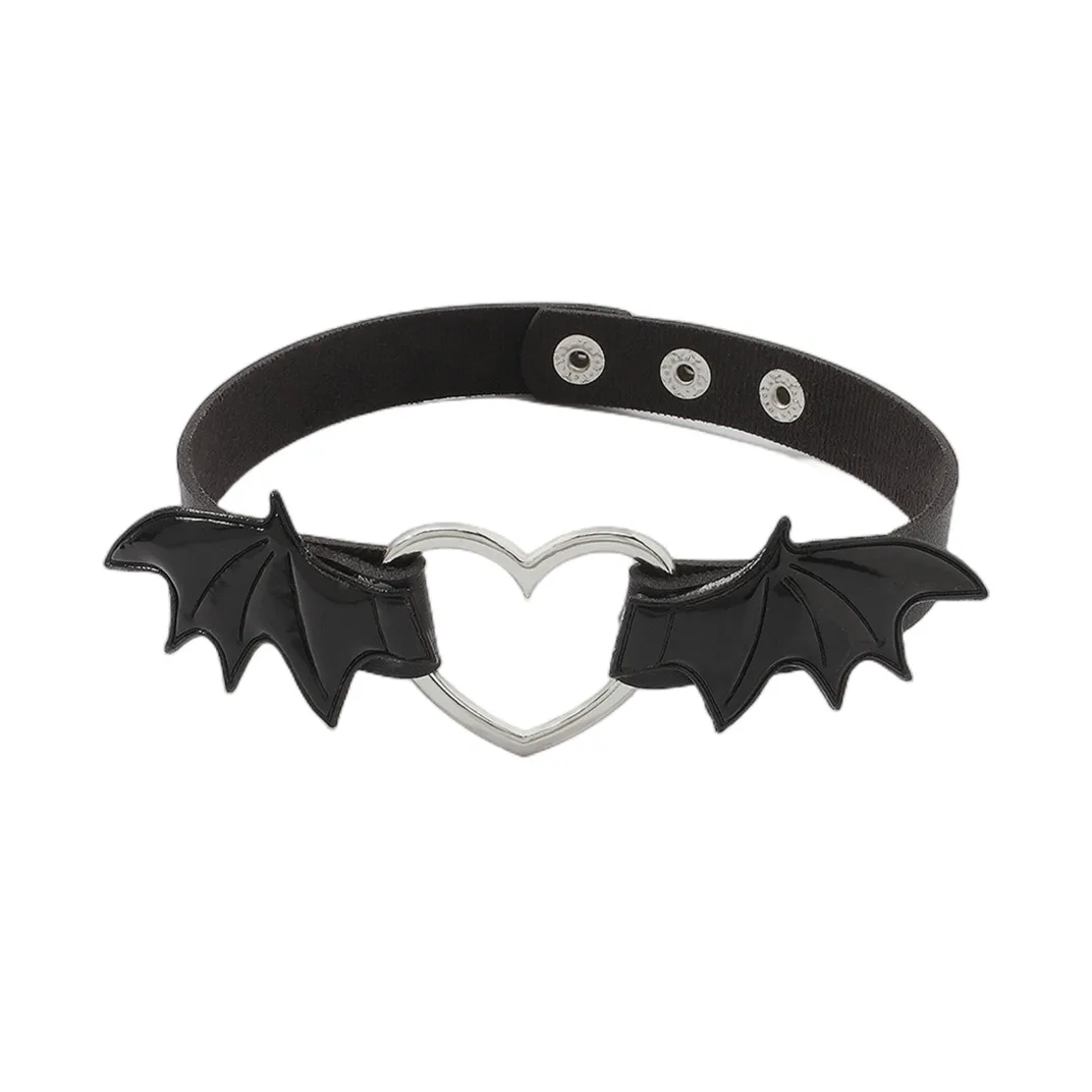 LuxHoney Fashion Gothic Punk Varicolored Leather Choker Necklace for Women Punker with Wired Heart and Snap Fastener Button
