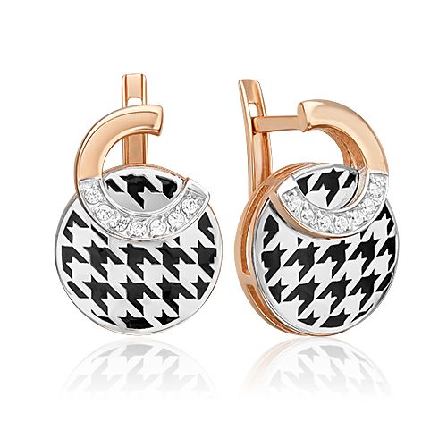 Серьги с принтом «Гусиная лапка» из комбинированного золота c фианитами и эмалью. Акцентные серьги из красного и белого золота 585 пробы с фианитами и ярким принтом Гусиная лапка из коллекции FASHION by PLATINA от ювелирного бренда PLATINA. Дизайн украшения в стиле геометрия и минимализм. Фактурный принт нанесён с помощью лазерной гравировки. Роспись чёрной краской эмали добавляет ему колоритность. Украшение инкрустировано бесцветными фианитами. Закрепка камней и эмалирование выполнены вручную. Серьги станут модным акцентом в повседневном или деловом образе и стильно дополнят вечерний или коктейльный наряд. Серьги с английским замком — популярное и актуальное украшение (jewelry). Все украшения от бренда PLATINA (Ювелирный завод ПЛАТИНА) приходят в красивой фирменной подарочной упаковке, а значит, идеально подходят для стильного подарка любимой женщине, девушке, жене, маме, мачехе, сестре, бабушке, тете, дочери, племяннице, родственнице, снохе, невестке, свекрови, теще, подруге, учителю, коллеге по работе. Если вы хоть раз задавались вопросом: Что особенного подарить любимому человеку? Украшение из драгоценных металлов станет прекрасной и оригинальной идеей! А выбирая ювелирные изделия от PLATINA, Вы можете быть уверены, что каждое из них станет идеальным, памятным и по-настоящему запоминающимся подарком на День рождения, годовщину свадьбы, Новый год, Рождество, именины, 8 марта, день всех влюбленных (14 февраля), день матери, выпускной, юбилей, на рождение ребенка, на профессиональный праздник, или любой другой повод. Гарантия 6 месяцев.