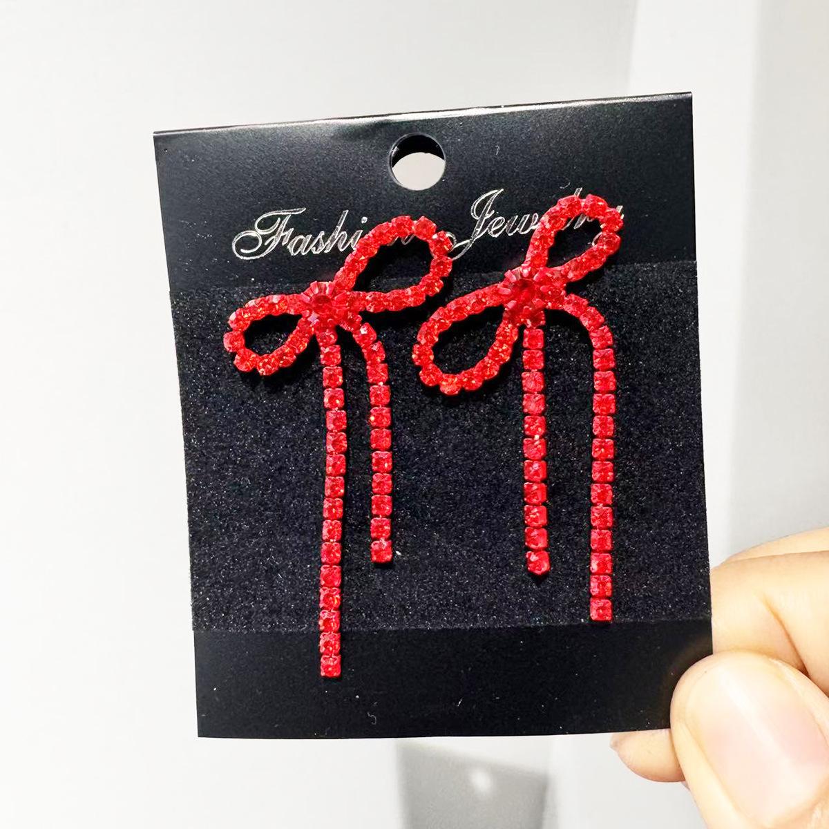 Серьги из красной серии с кристаллами, модные длинные серьги-кисточки в форме банта, темпераментные серьги высокого качества, женские серьги, 1 пара