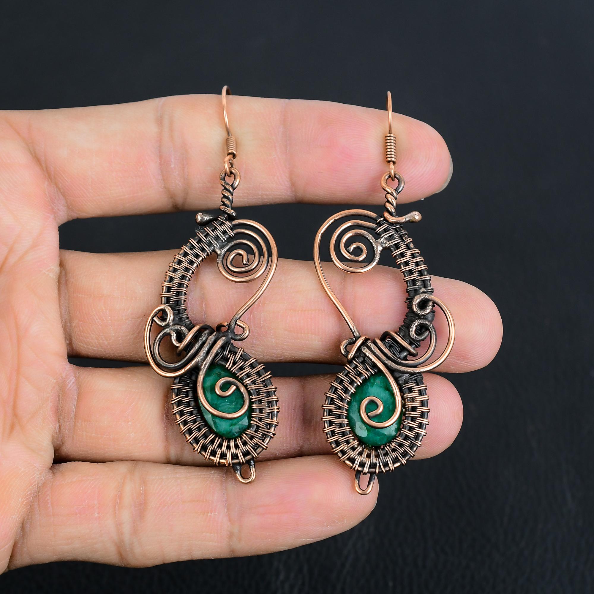 Серьги из медной проволоки 999 пробы с изумрудом, Ювелирные изделия с драгоценными камнями ручной работы, Подарки для жены, Совершенно новые серьги 3.07 Inches