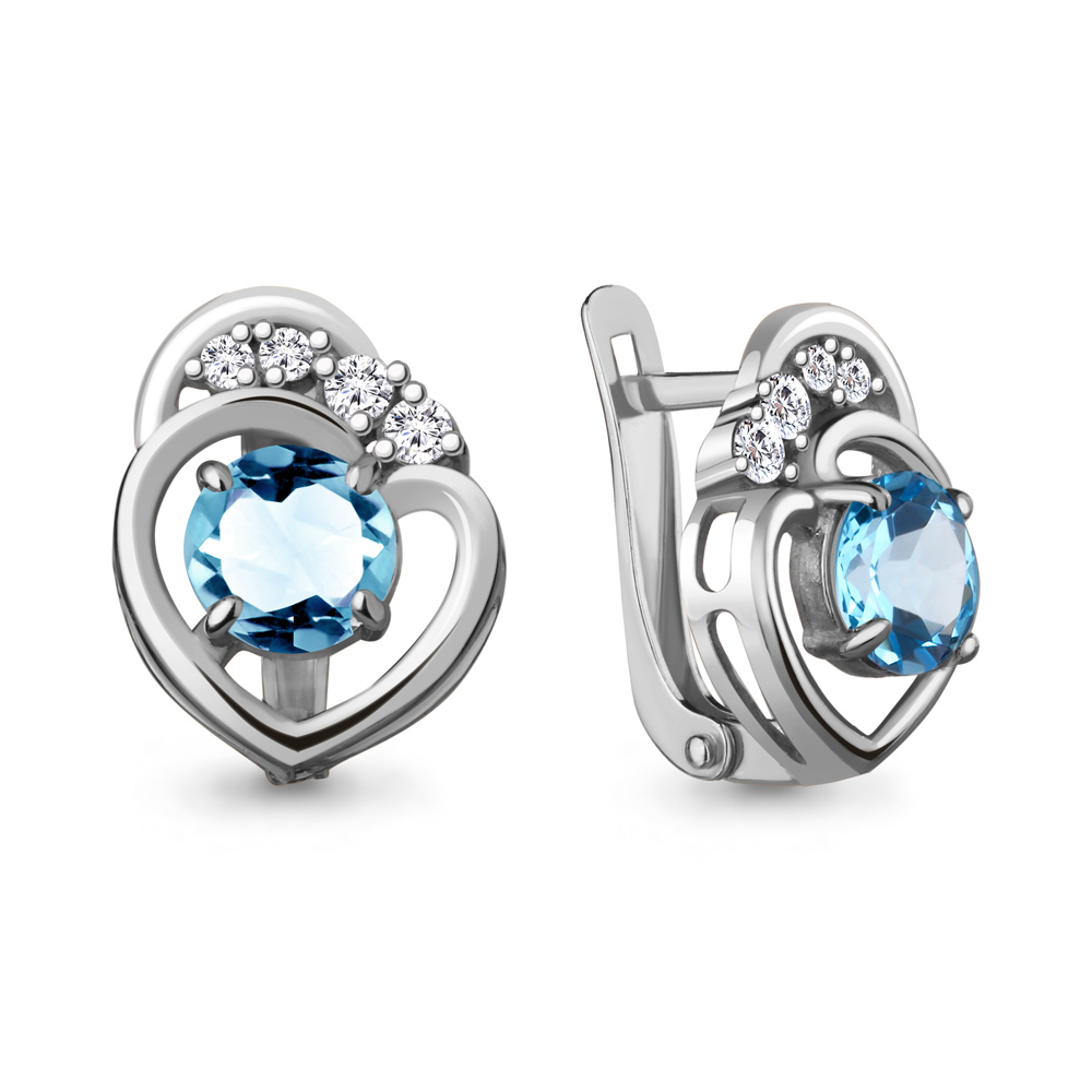 Серьги из серебра с топазом/фианитом Aquamarine 4741805А_925_р, 4741805А_925_р