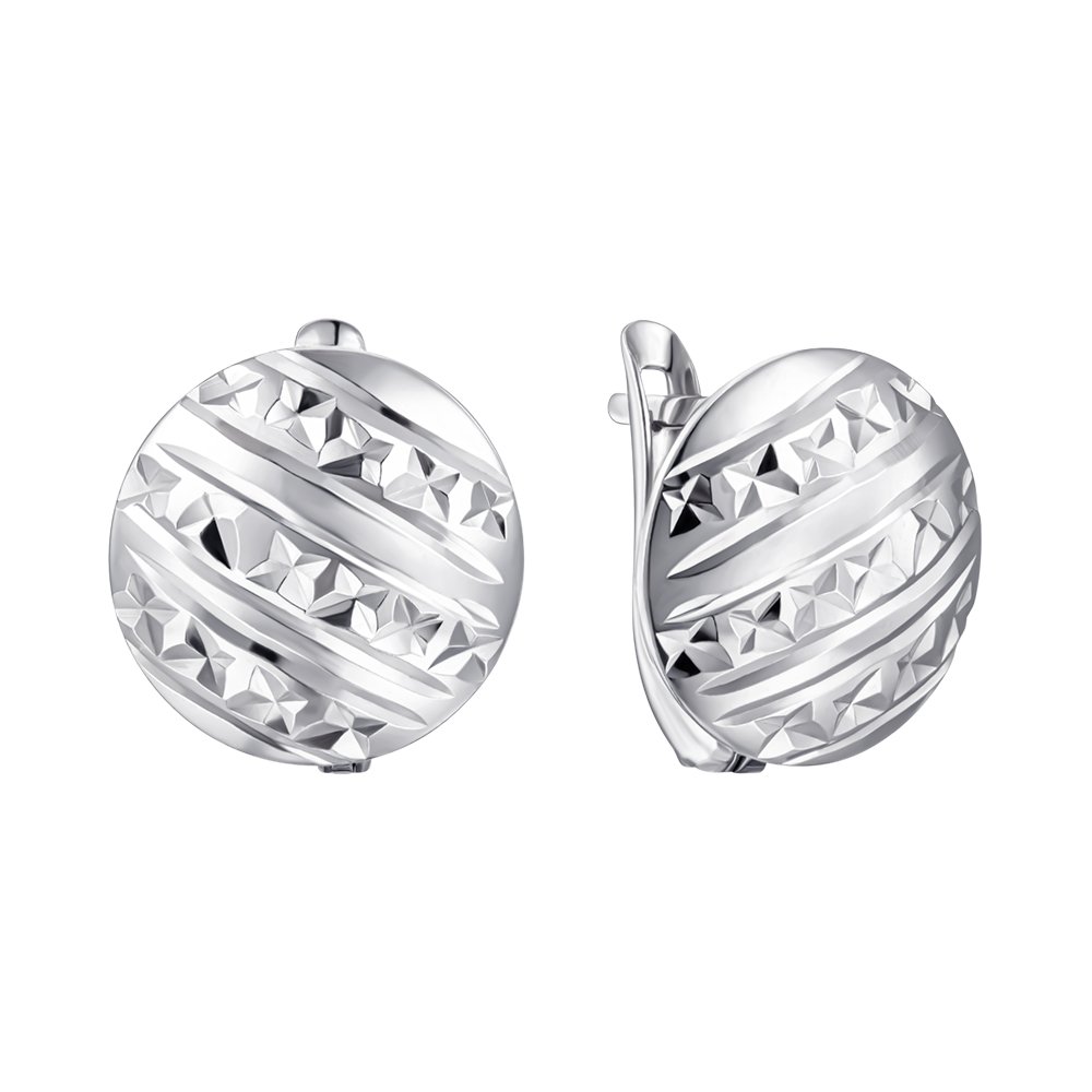 [html]Металл: Серебро 925Цвет металла: БелыйПокрытие: РодированиеВставка 1: Без вставкиДизайн серег: КругЗамок сережки: АнглийскийСтиль украшения: Алмазная грань/насечкаСтрана: Украина[/html]
