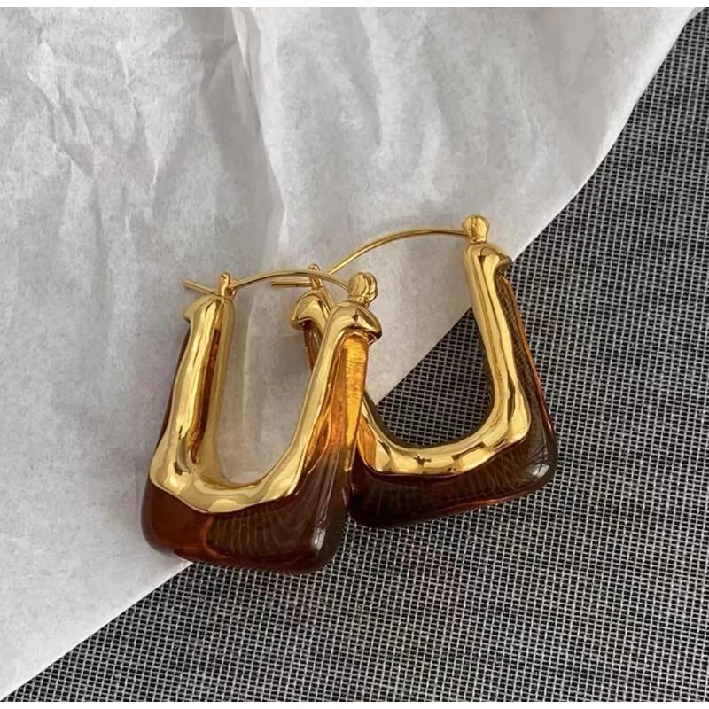 Серьги из смолы, женские геометрические серьги-гвоздики неправильной формы, новые модные украшения для ушей, вечерние U-образные серьги, ретро индивидуальность, все с нишевыми серьгами