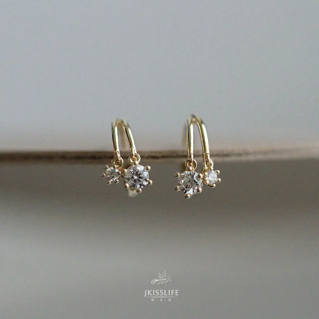 Серьги из 14-каратного золота, инкрустированные цирконием и бриллиантами, простые и универсальные, милые женские мини-серьги