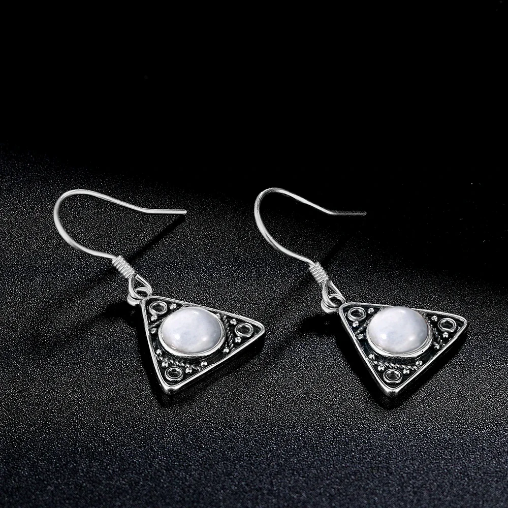 Серьги-подвески женские из серебра 925 пробы с натуральным лунным камнем
