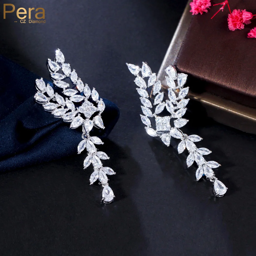 Серьги-подвески женские с фианитами, симметричного дизайна, E986
