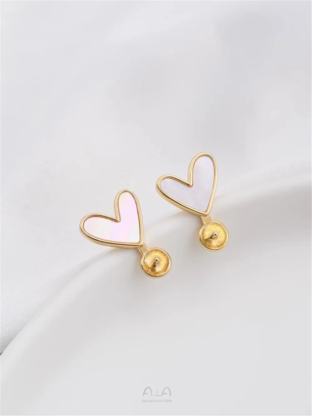 Серьги-подвески из серебра 925 пробы в форме сердца с натуральной персиковой ракушкой, 14 к