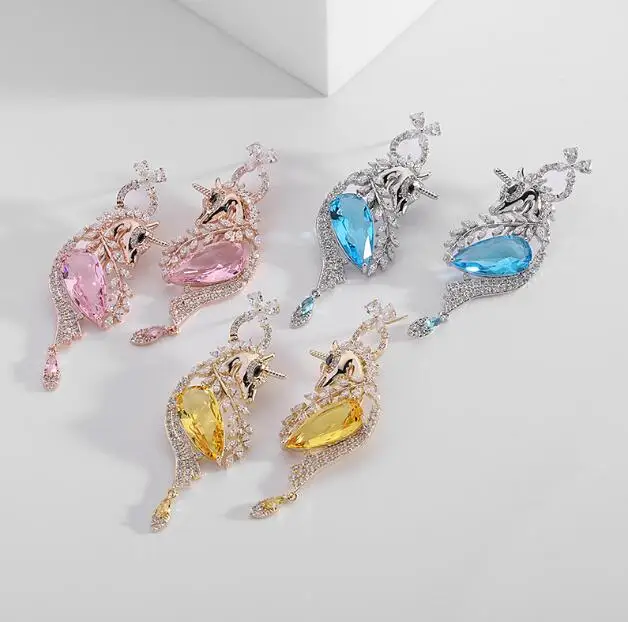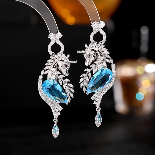 Серьги-подвески из серебра s925 пробы с цирконом в форме единорога