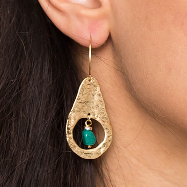 Серьги-подвески с декором природного камня 1 пара, Многоцветный
