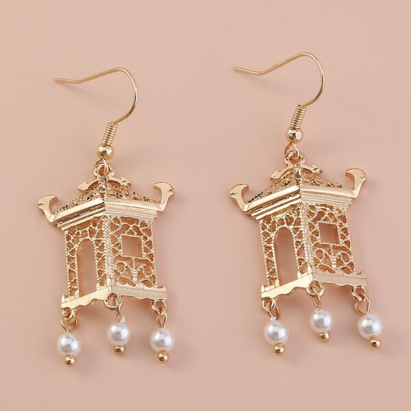 Серьги-подвески с подвеской фонарика и жемчугами 1 пара, Золотистый