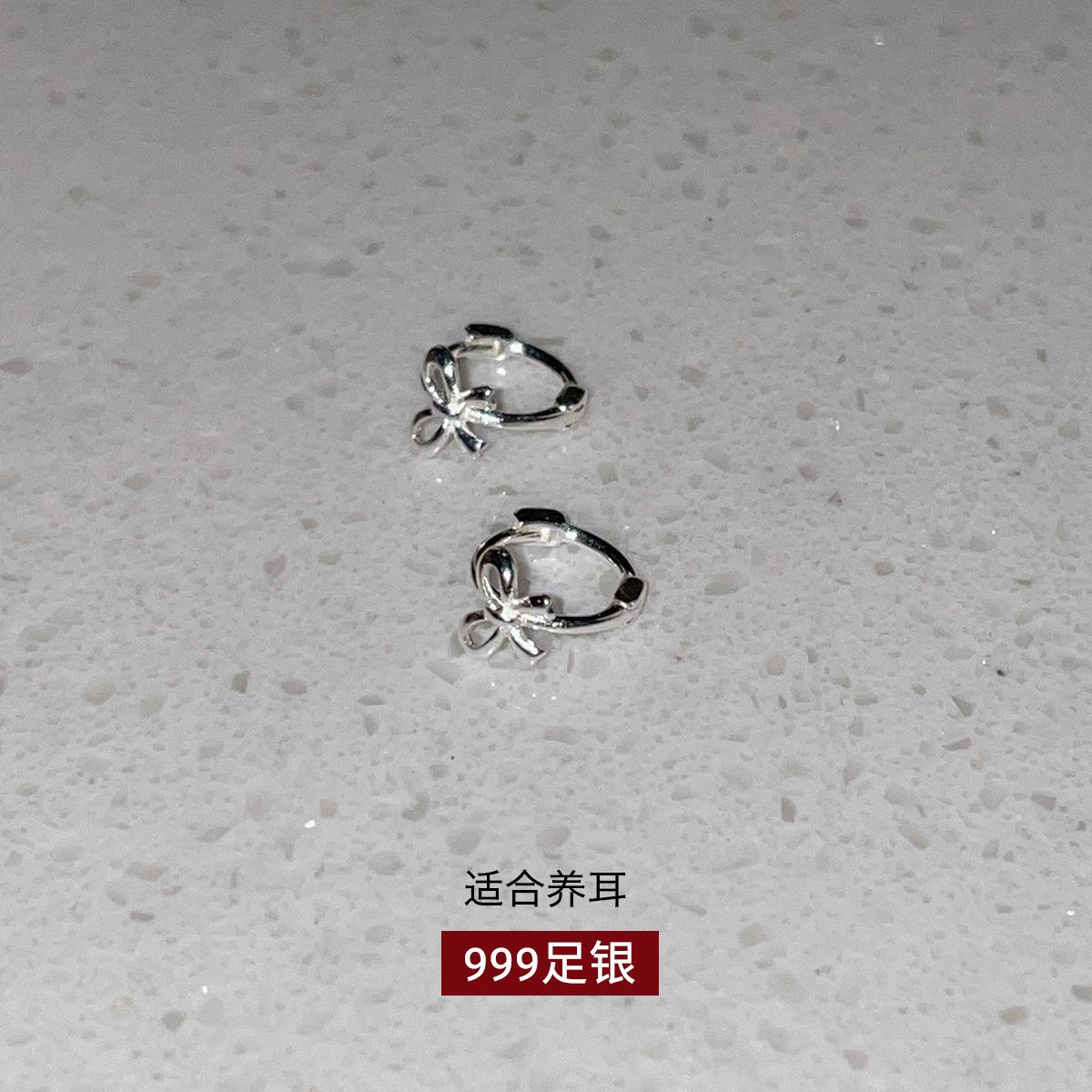 Серьги-пряжки-бантики из стерлингового серебра 999 пробы, простые, маленькие, изысканные, с чувством нишевого дизайна, высококачественные натуральные универсальные новые серьги 999 silver