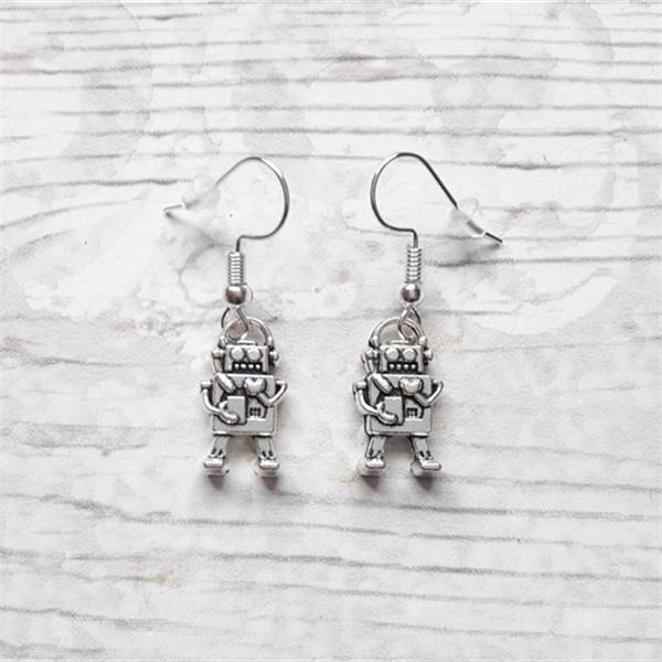 Серьги-роботы, серьги в стиле фанк, серьги в стиле стимпанк, научно-фантастические украшения, подарок на день рождения