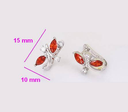 Серьги родированные, Веточка с красным цирконием, англ.замок, Xuping