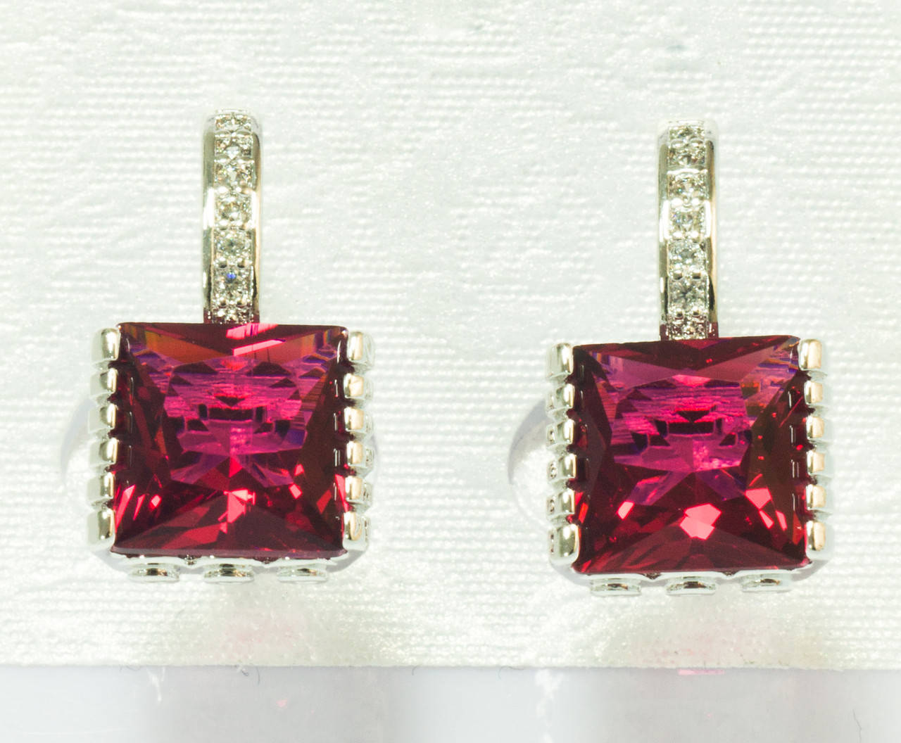 Серьги родированные, Квадрат с красным цирконием, медсталь Xuping