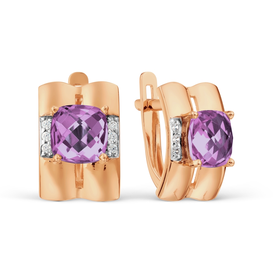 Серьги из красного золота 585 пробы с аметистом и бесцветными фианитами (арт. Т147028228).