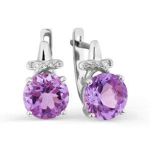 Серьги из белого золота 585 пробы с аметистом и бесцветными фианитами (арт. Т303026614-01).