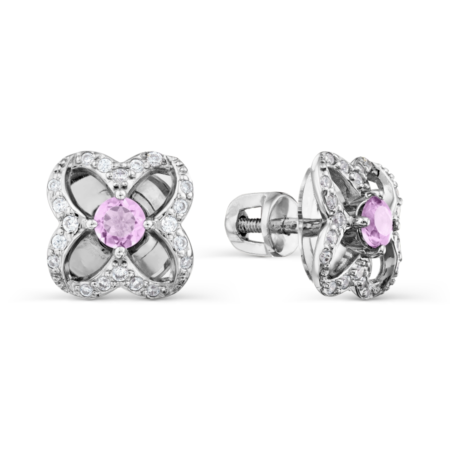 Серьги из белого золота 585 пробы с аметистом и бесцветными фианитами (арт. Т307029070).