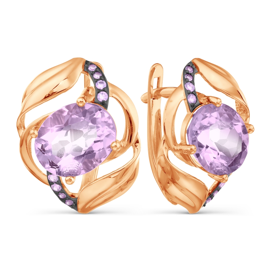 Серьги из красного золота 585 пробы с аметистом (арт. Т147028527-01).