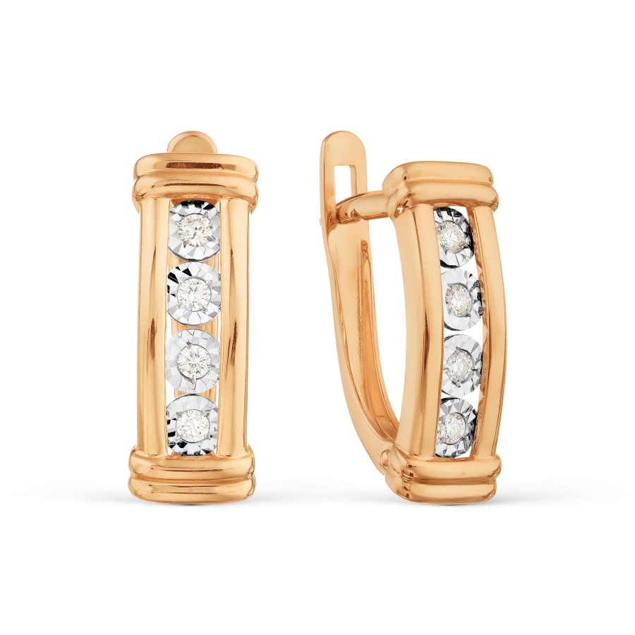 Серьги из красного золота 585 пробы с белыми бриллиантами (арт. Т145629340).