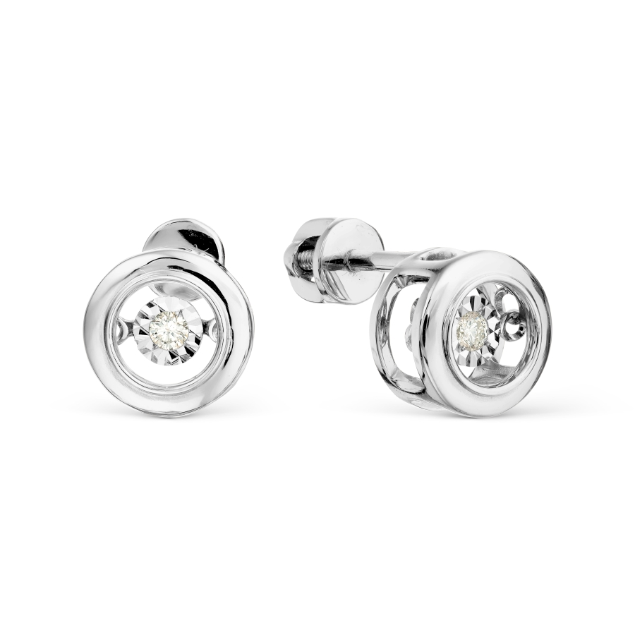 Серьги гвоздики из белого золота 585 пробы с белыми бриллиантами (арт. Т305629236).