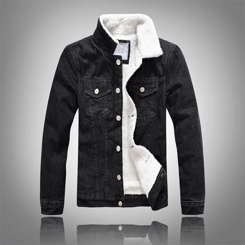 Men's Denim Jacket Warm Winter Casual Bomber Male Korean Style cowboy Jacket Fashion Fleece Vintage Clothing Men Black Jean Coat
