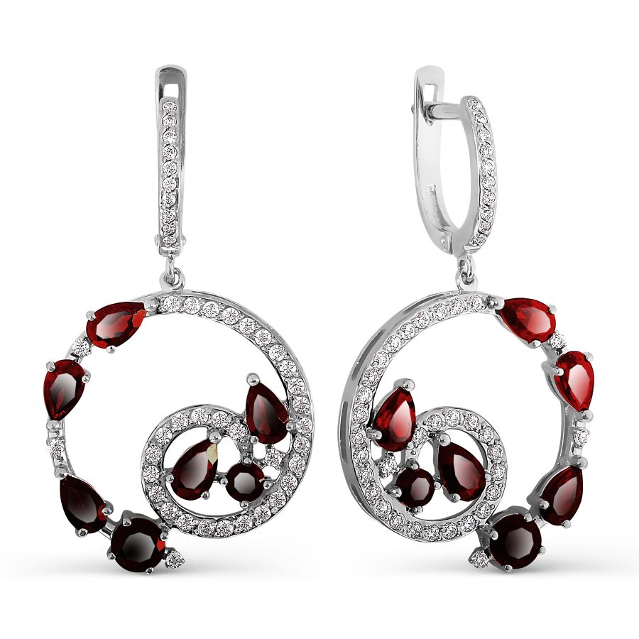 Серьги из белого золота 585 пробы с гранатом и бесцветными фианитами (арт. Т307026830).