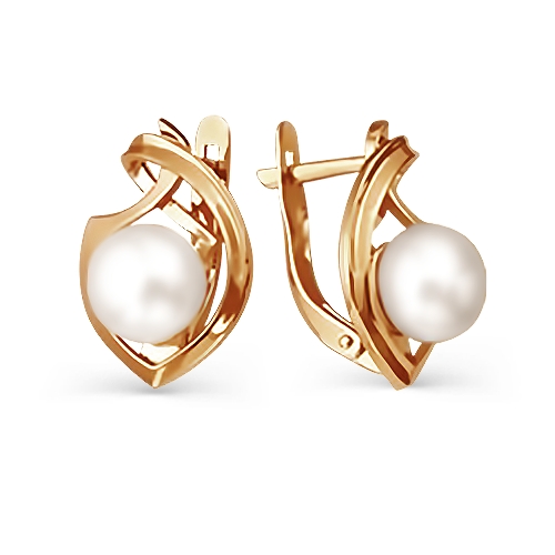 Серьги из красного золота 585 пробы с белым жемчугом (арт. Т108021680).