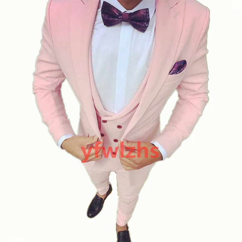 Handsome One Button Groomsmen Peak Lapel Groom Tuxedos Wedding Dress Men Suits Blazer Prom Dinner (Jacket+Pants+Tie+Vest) B103