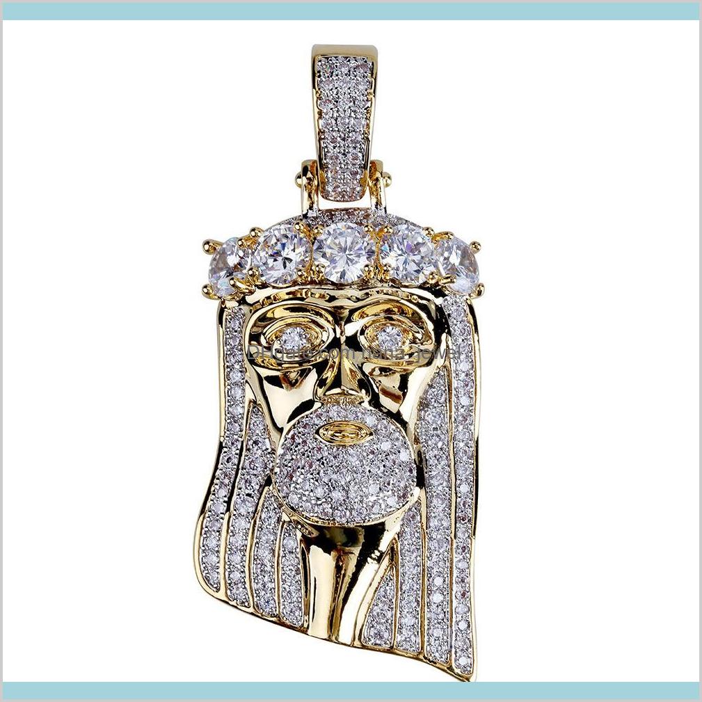 Whosale Fashion Copper Gold Silver Color Plated Iced Out Jesus Face Pendant Necklace Micro Pave Cz Stones Hiphop Bling Jewelry Pwm6T 5Ji6B