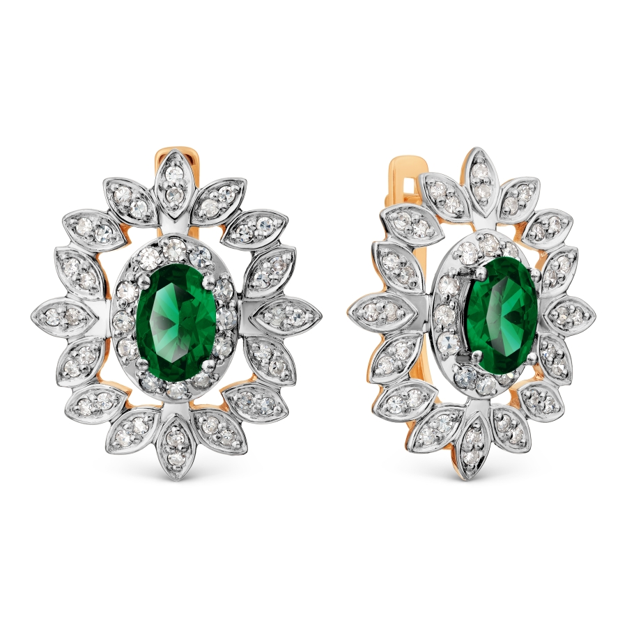 Серьги из красного золота 585 пробы с белыми бриллиантами и изумрудом (арт. Т141028060).