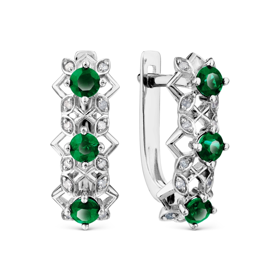 Серьги из белого золота 585 пробы с белыми бриллиантами и изумрудом (арт. Т301028326).