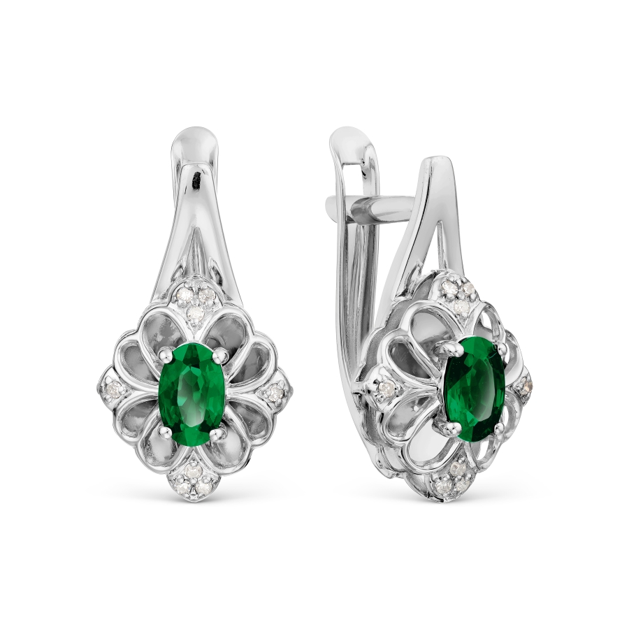 Серьги из белого золота 585 пробы с изумрудом и белыми бриллиантами (арт. Т301029403).