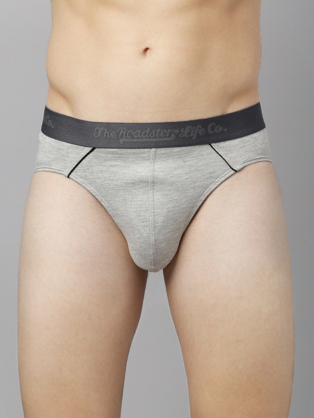 The Roadster Lifestyle Co Men Grey Melange Solid Basic Briefs - RD3730-1PP-BRF-GRY