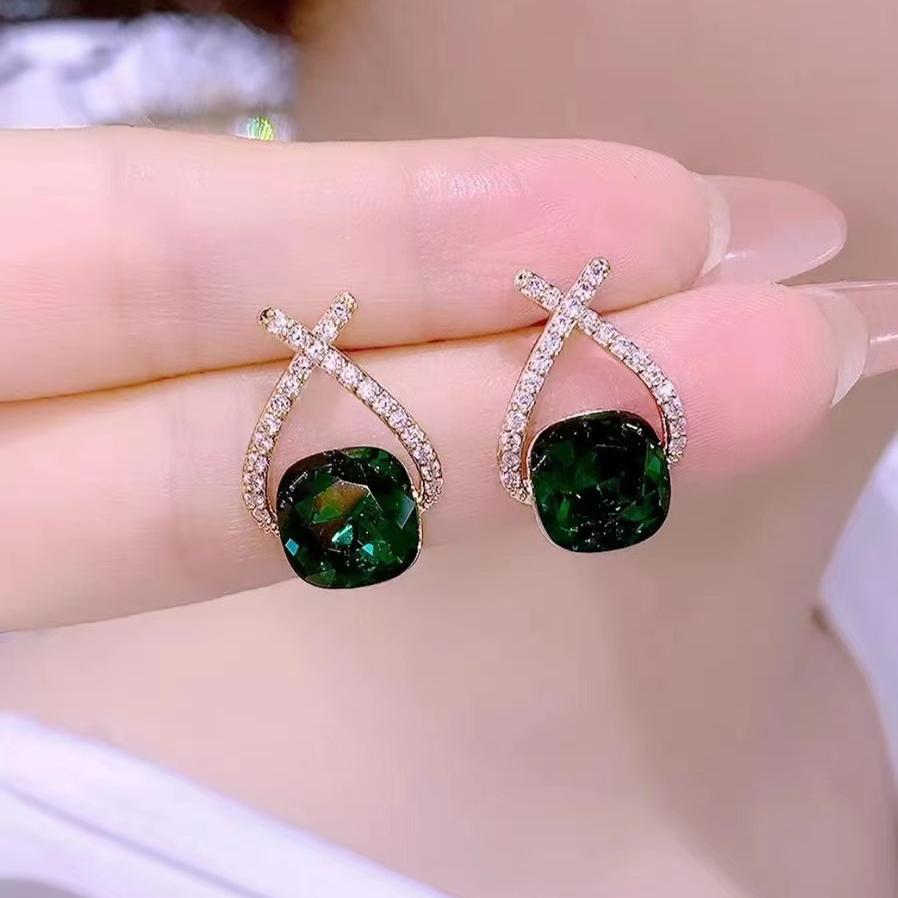 Серьги с микро-инкрустацией, женские серьги с крестиком и кристаллами, модные украшения зелёный