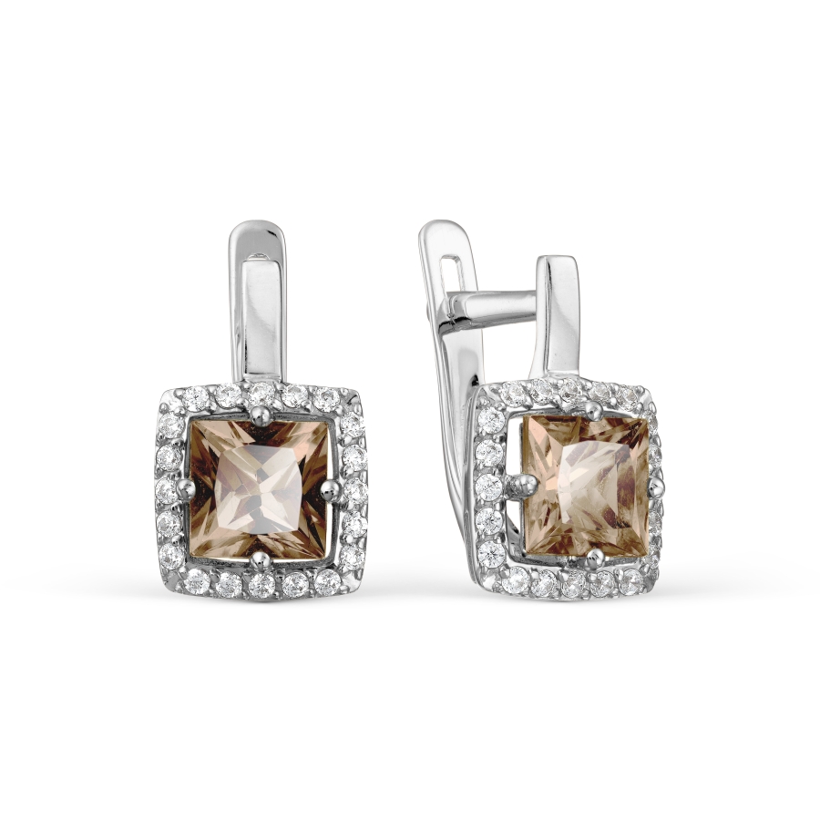 Серьги из белого золота 585 пробы с раухтопазом и бесцветными фианитами (арт. Т307027885).