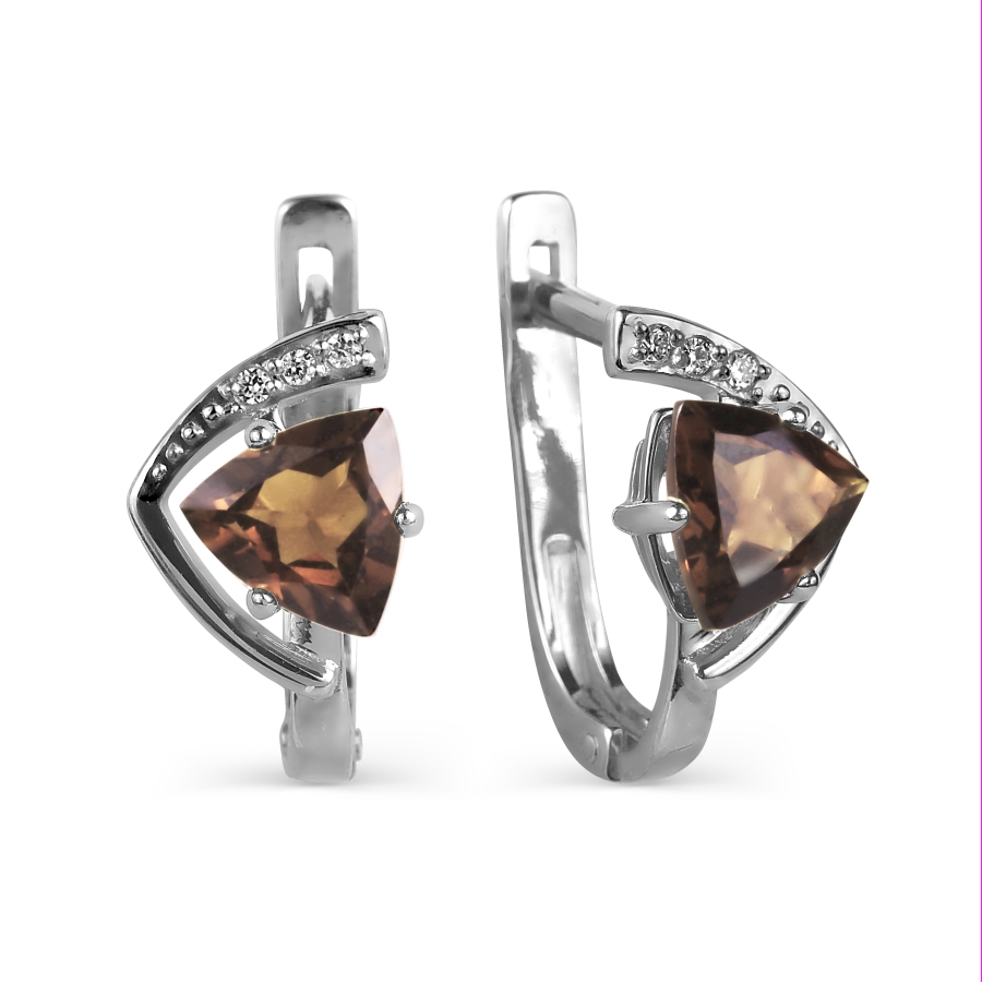 Серьги из белого золота 585 пробы с раухтопазом и бесцветными фианитами (арт. Т303025937).