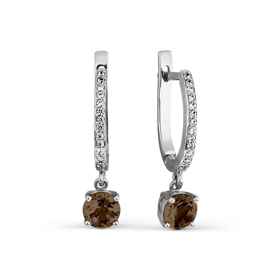 Серьги из белого золота 585 пробы с раухтопазом и бесцветными фианитами (арт. Т303026724-01).