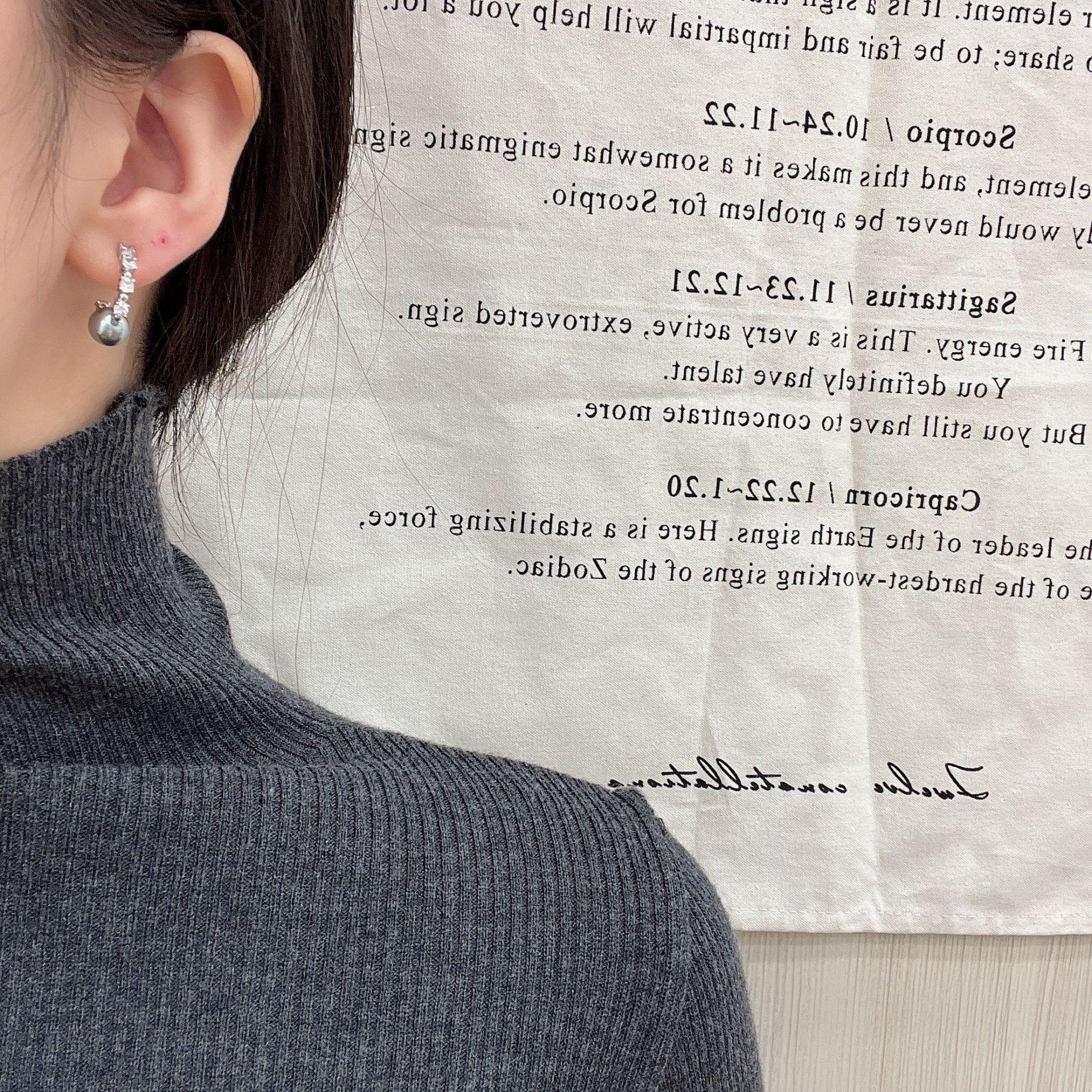 Серьги с серым жемчугом и цирконием и бриллиантами — элегантный стиль для осени/зимы 2024 г. E0914, C Hoop серый