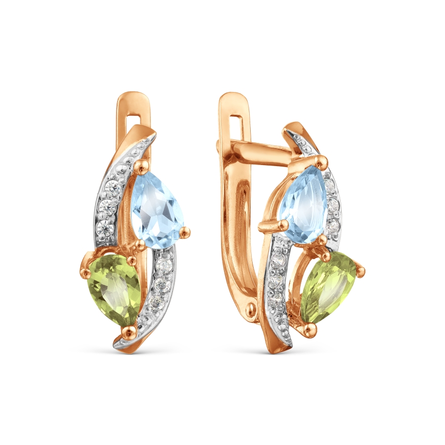 Серьги с топазами, хризолитами и фианитами Линии Любви, Серьги Т143029592