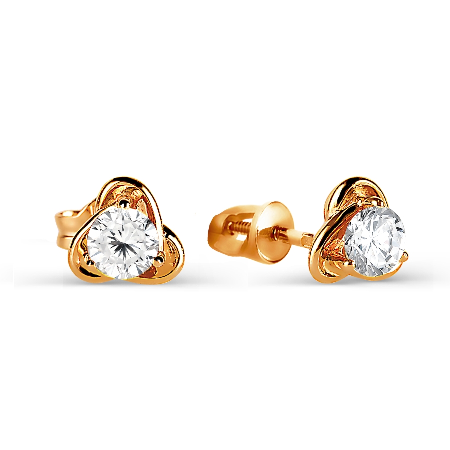 Серьги гвоздики из красного золота 585 пробы с бесцветными фианитами (арт. Т102026096-1).