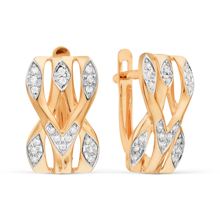 Серьги из красного золота 585 пробы с бесцветными фианитами (арт. Т147029160).
