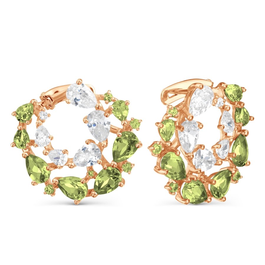 Серьги из красного золота 585 пробы с хризолитом и бесцветными фианитами (арт. Т103028164).