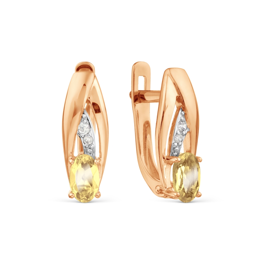 Серьги из красного золота 585 пробы с цитрином и бесцветными фианитами (арт. Т143029446).