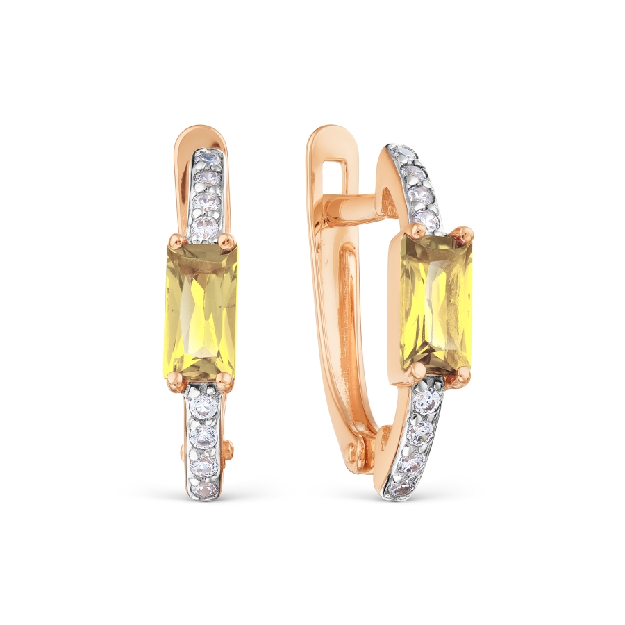 Серьги из красного золота 585 пробы с цитрином и бесцветными фианитами (арт. Т147028663).