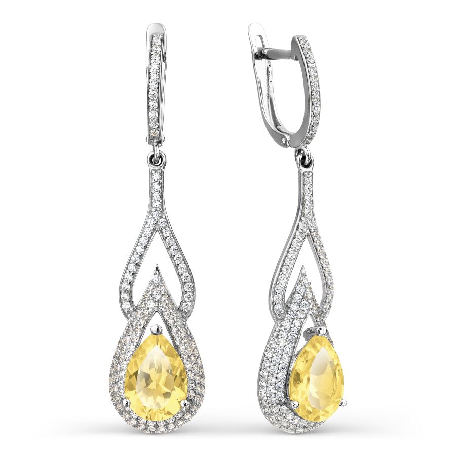 Серьги из белого золота 585 пробы с цитрином и бесцветными фианитами (арт. Т307027708).
