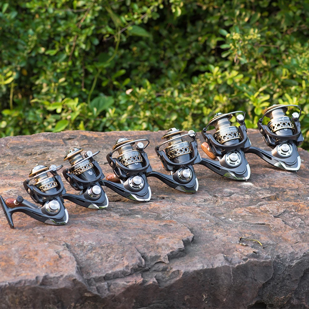 Fishing Spinning Reel 4.7:1 Ratio Ultra Smooth Wooden Knob Powerful Fishing Reel for Freshwater Saltwater Metal Fishing Vessel